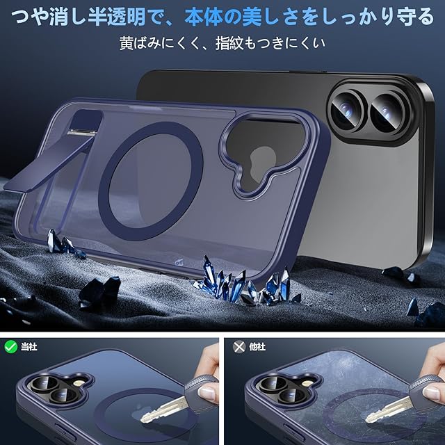商品名:Fin2feel iPhone 17 ケース【MagSafe高速充電対応】ガラスフィルム &スタンド付き 米軍 MIL 耐衝撃認定 耐衝撃・指紋防止・黄ばみ防止 TPU+PC 素材 6.3 インチ専用(ブルー)