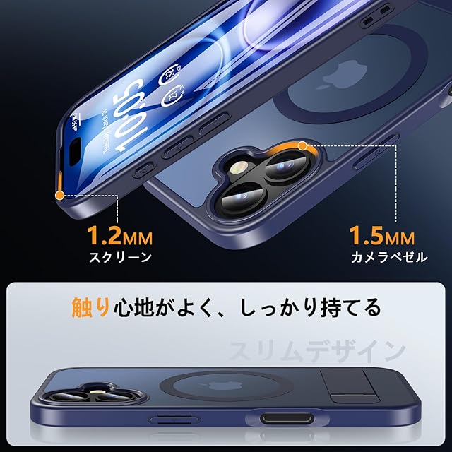 Fin2feelのiPhone 17 ケースは、6.3インチ機種にぴったりフィットする専用設計です。米軍MIL規格認定の耐衝撃性能を備え、四隅のエアクッション構造が10FT落下にもしっかり対応し、衝撃吸収率90%以上でスマホを全方位から守ります。カメラは1.5mm、画面は1.2mm高く保護する設計で、机に置く際の直接的な接触を防ぎ、キズを未然に抑えます。 MagSafeに完全対応した2400ガウスの強力磁石を内蔵しているため、充電器に近づけるだけでパチッと吸着し、他社比45%速い充電を実現。車載ホルダーや各種MagSafeアクセサリーともシームレスに連携し、日常の充電シーンをより便利にします。 背面には多角度調整可能な一字型スタンドが搭載され、水平・垂直の自由な角度設定で、ドラマ鑑賞やビデオチャット、オンライン会議などの場面に最適な視点を提供。手で持つ疲れから解放され、毎日のスマホ使用を快適にサポートします。 さらに、9H硬度の強化ガラスフィルムが同梱されています。99.9%の透明度で画面の鮮やかさを損なわず、指紋がつきにくい特殊コーティングと気泡なしの簡単貼り付けで、画面保護もムダなく実現。 指紋防止素材を採用したTPU+PCの3層構造は、手汗や汚れがつきにくく常に清潔を保ち、長期使用でも黄ばみを抑える特性を持っています。精密な加工によりカメラの撮影性能やスピーカーの音質を損なわず、ストラップホールも備えて持ち運びも便利。iPhone 17の使い勝手を高める、実用的で高品質なケースです。