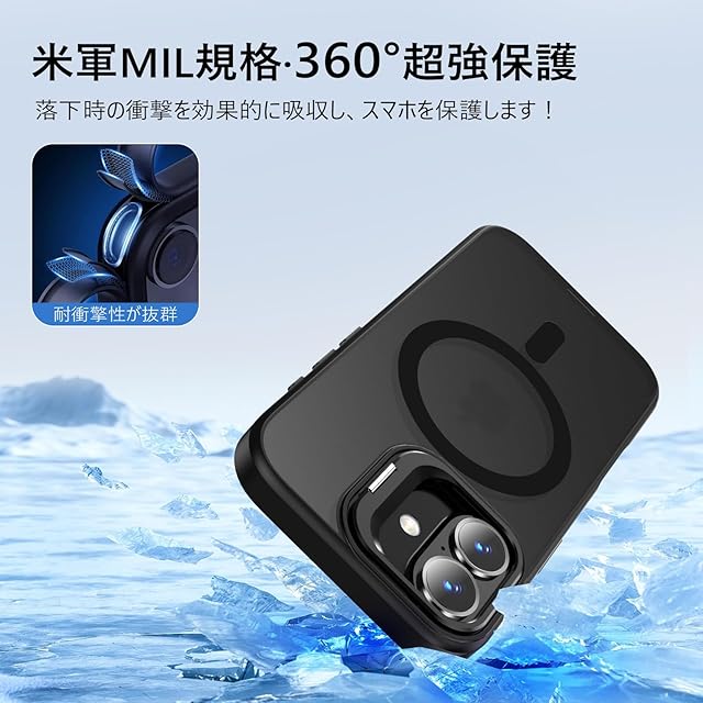商品名:iphone 17用ケース レンズスタンド付き iphone 17 ケース Magsafe対応 隠れスタンド アイフォン 17 カバー 米軍MIL規格 耐衝撃 スマホケース アイフォン 17 軽量 いphone17 カバー マグネット内蔵 防指紋 半透明 マット 黄変防止 6.3インチ ブラック【SHANGHAO】