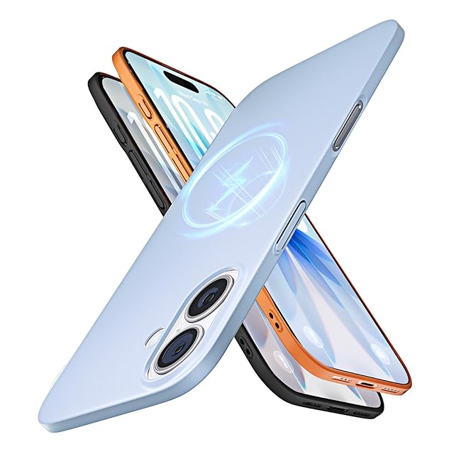 LISEN 超薄型 iPhone 17 用 ケース Magsafe対応 マット感 指紋防止 擦り傷防止 軽量PC素材 日常保護 ワイヤレス充電対応 ストラップホール付き アイフォン17 携帯カバー 6.3インチ for あいふおん17 (スカイブルー)