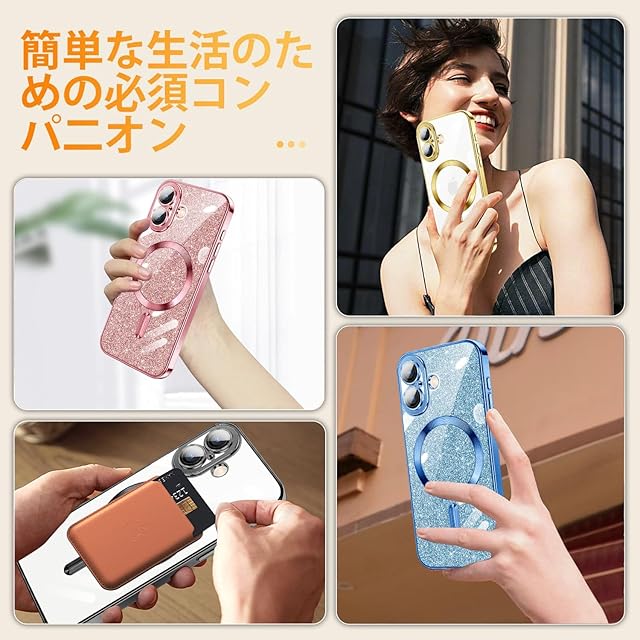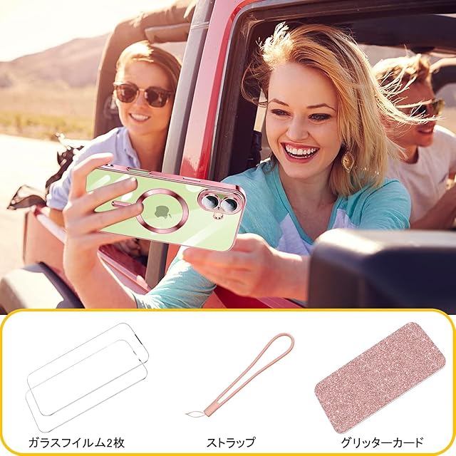 商品名:iPhone 17 用 ケース クリア MagSafe対応 ワイヤレス充電 マグネット搭載 2枚 HDフィルム付き キラキラ グリッターカード ストラップ付き アイフォン 17 カバー マグセーフ対応 薄型 軽量 レンズ保護 全面保護 耐衝撃(ピンクゴールド)