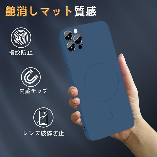 商品名:MiaoKeDa iPhone 12 ProMax MagSafe対応 シリコン ケース イフォン 12ProMax マグネット搭載 ワイヤレス充電 スマホケース 耐衝撃 全面保護 ストラップホールバンパー いpほね12 人気 薄型 いphone カバー ネイビーブルー