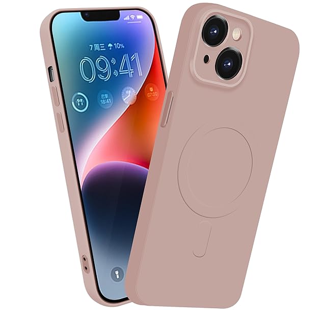 MiaoKeDa iPhone 14 Plus MagSafe対応 シリコン ケース イフォン 14plus マグネット搭載 ワイヤレス充電 スマホケース 耐衝撃 全面保護 ストラップホールバンパー いpほね14 人気 薄型 いphone カバー ピンク