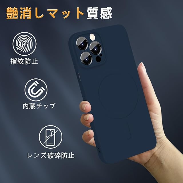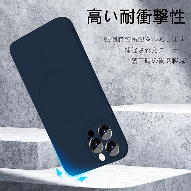 商品名:I Phone 15 Pro MagSafe対応 シリコン ケース イフォン 15Pro マグネット搭載 ワイヤレス充電 スマホケース 耐衝撃 全面保護 ストラップホールバンパー いpほね15 人気 薄型 いphone カバー ネイビーブルー