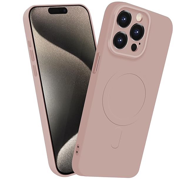 MiaoKeDa iPhone 15 Pro MagSafe対応 シリコン ケース イフォン 15Pro マグネット搭載 ワイヤレス充電 スマホケース 耐衝撃 全面保護 ストラップホールバンパー いpほね15 人気 薄型 いphone カバー ピンク