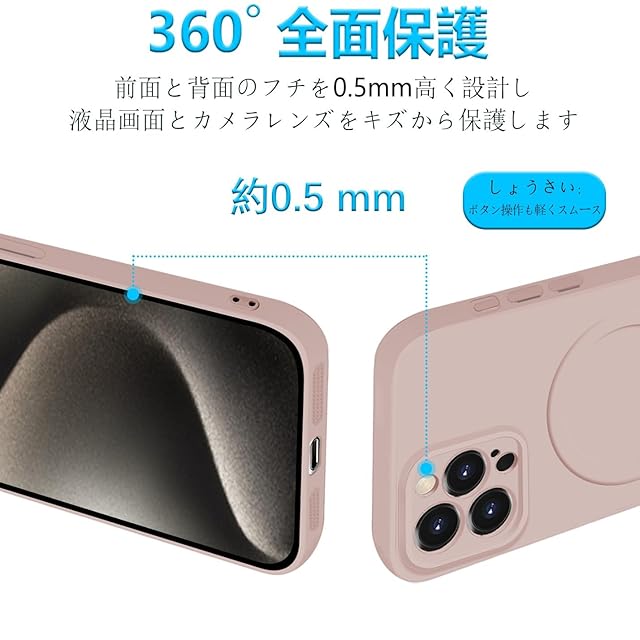 商品名:MiaoKeDa iPhone 15 Pro MagSafe対応 シリコン ケース イフォン 15Pro マグネット搭載 ワイヤレス充電 スマホケース 耐衝撃 全面保護 ストラップホールバンパー いpほね15 人気 薄型 いphone カバー ピンク