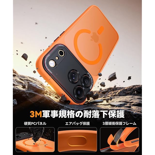 商品名:【米軍MIL規格・指紋防止】JUESHITUO iPhone 17 pro max 用の ケース 耐衝撃 マット マグネット搭載 いphone17promax 用の ケース MagSafe 充電対応 1Xスクリーン保護 黄ばみなし ストラップホール付き 半透明 カバー 6.9インチ コズミックオレンジ