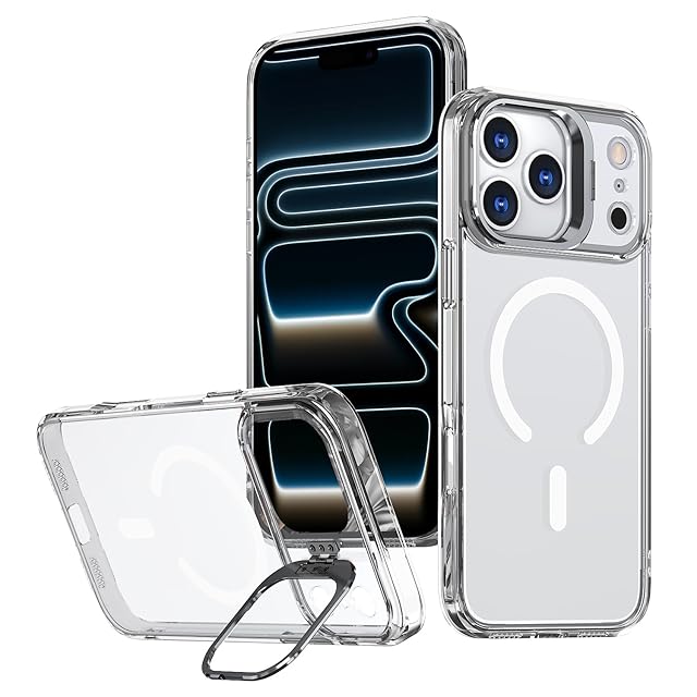 【TIFIYA】For iPhone 17 Pro 用 ケース クリア スタンド付き MagSafe マグネット搭載 TPU+PC 米軍MIL規格 衝撃吸収 スマホケース 軽量 耐久性 アイフォン 17 プロ 対応 ケース ワイヤレス充電対応 黄ばみなし 落下防止 iphone 17 pro 保護カバー(透明)