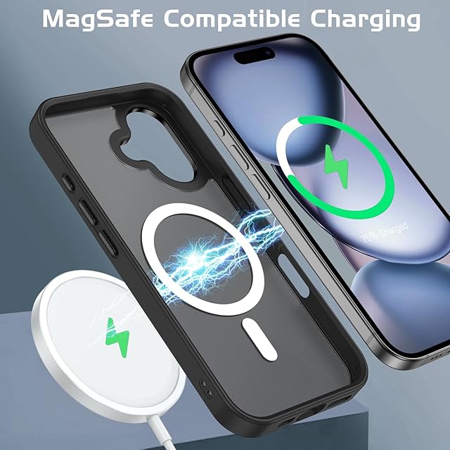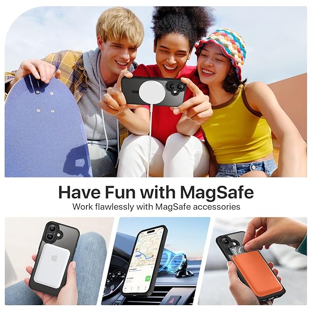 BENTOBEN iPhone 17対応 ケース MagSafe対応 ワイヤレス充電 耐衝撃 米軍MIL規格 マット 半透明 マグネット搭載 ストラップホール付き 指紋防止 黄変防止 耐久性 iPhone 17対応 ケース カバー ブラック