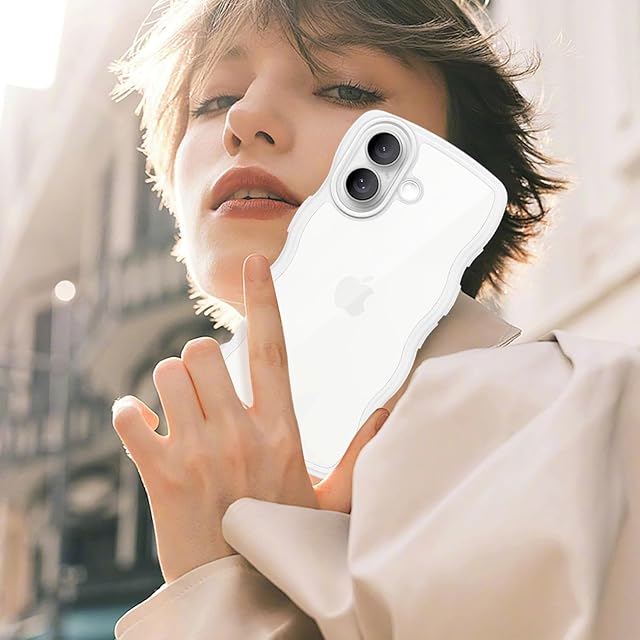 iPhone 17 用 ケース クリア かわいい 波状フレーム うねうね 耐衝撃 アイフォン 17 用 スマホケース 滑り止め 人気 可愛い カバー 落下防止 ワイヤレス充電対応(ホワイト)