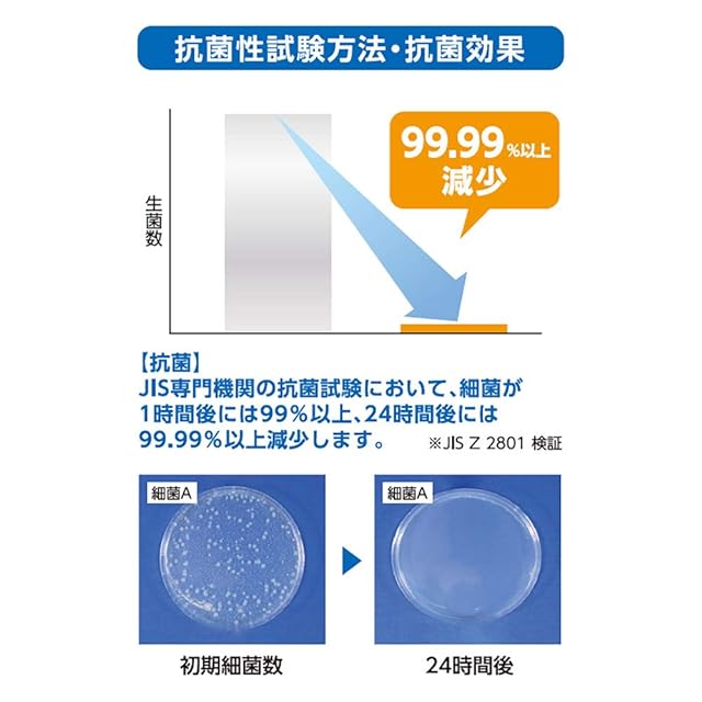 ★【抗菌】JIS専門機関の抗菌試験において、細菌が24時間後には99%以上減少します。