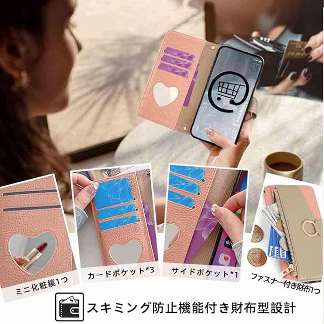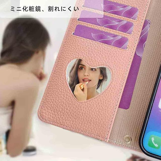商品名:TOO&SOO 対応 iPhone 17 Pro ケース 鏡付き いphone17pro ケース ショルダー ストラップ付き アイフォン17プロ 携帯ケース スタンド機能 アイホン17 プロ カバー カード収納 ミラー付き 耐衝撃 肩掛け あいふぉん17プロ スマホケース おしゃれ 女性 柔らかいTPU iPhone 17 Pro ケース 手帳型 斜め掛け - ピンク
