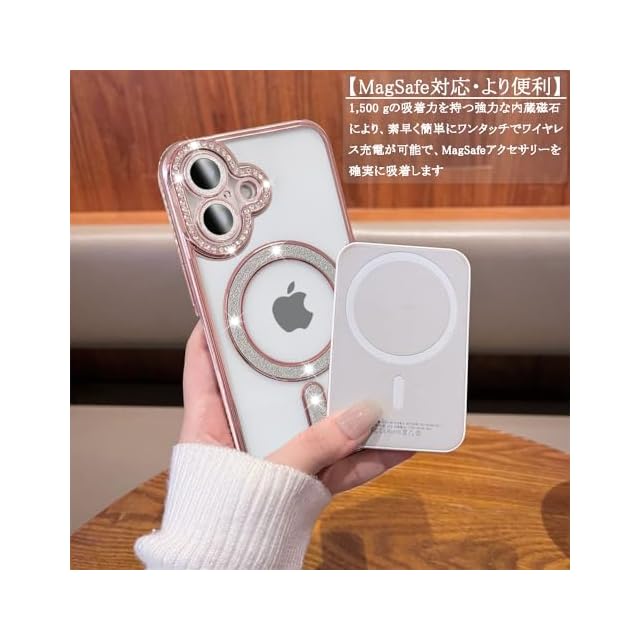 商品名:JOOBOY スマホケース 対応 iPhone 17 クリア ケース 透明 メッキ加工 Magsafe対応 きらきら ブリンブリン 衝撃吸収 かわいい キラキラ 女性 人気 キャラクター ワイヤレス充電対応 おしゃれ ストラップホール付き アイフォン17 携帯カバー (ピンク, iPhone17)