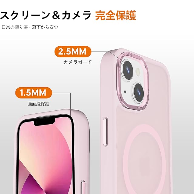 【対応機種】iPhone 13 mini ケース のために専門設計。(スピーカーとカメラそして他の部位は完璧にカットアウトして、iPhone のすべての機能はケースをつけたままスムーズに操作できます)<br>【指紋防止】 手の脂・汗を効果的に抑えつつ、ずっと触っていたい肌触りを実現。手汗がすごい方や冬にハンドクリームを使う方ににおすすめ<br>【強化された磁気ロック】2100 Gの吸着力を備えた強力な内蔵磁石により、より速く簡単に持ち運びできるワイヤレス充電とやMagSafeアクセサリーに対応した安全なロックが可能となります<br>【画面とカメラの保護】隆起した画面の端とカメラガードレンズフレームにより、傷保護機能をアップグレードしました。<br>【品質】:製品に不具合が生じた場合は、商品到着30日以内に、直接当店にメールにてご連絡ください。お客様からのお問い合わせ内容に応じて代替品交換・返金可能です。