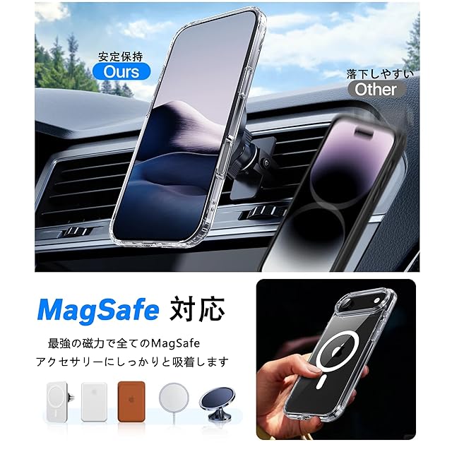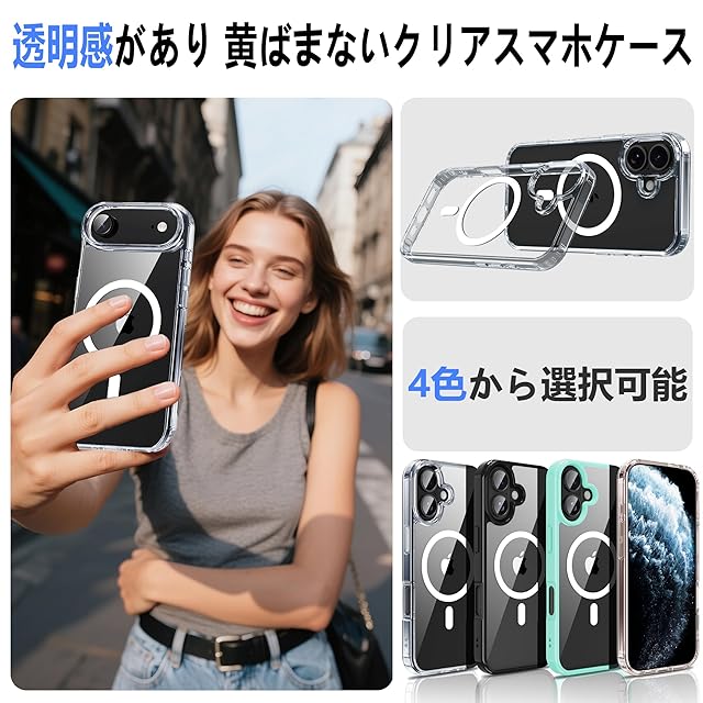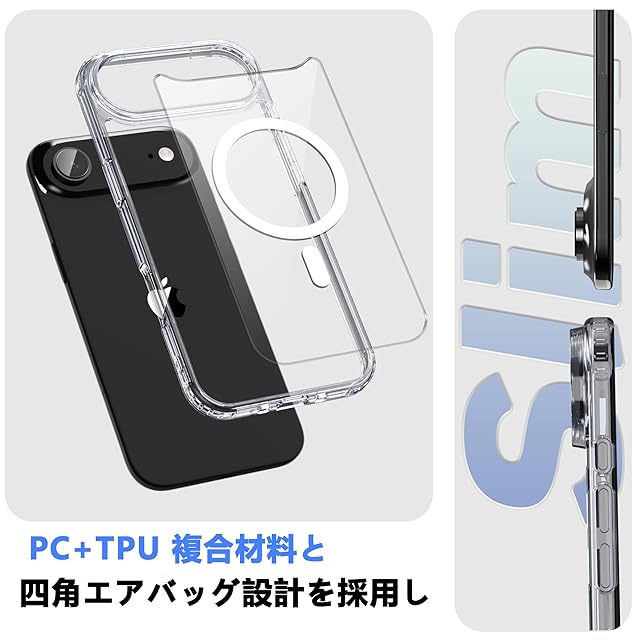 商品名:PinLiSheng iPhone Air ケース クリア MagSafe対応 耐衝撃 マグネット搭載 カバー 米軍MIL規格 黄ばみなし ストラップホール付き マグセーフ対応 ワイアレス充電対応 アイフォン Air ケース クリア