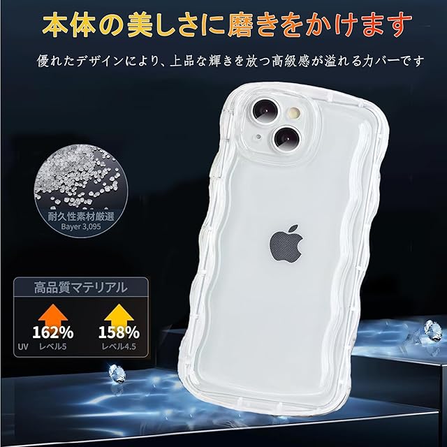 【かわいい波枠】これはiPhone 14 Plus ケース用のクリアユニークな境界デザインで。かわいい波状のボーダーが指にフィットし、摩擦が高まります。透明度が高く、黄変防止を実現しました、スマホ本体の美しさを完璧に見せる、携帯電話をよりファッショナブルで目を引くようにします。ファッションと実用性の完璧な組み合わせ。柔らかTPU素材なので着脱簡単です。 背面にはアクリルスタンドや写真などを入ることができる。