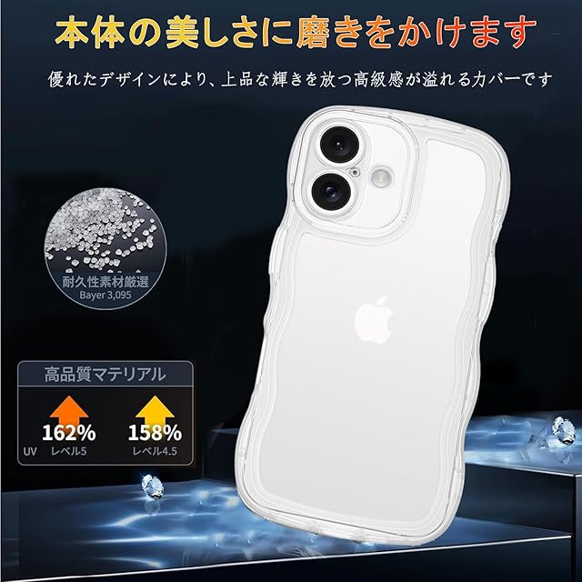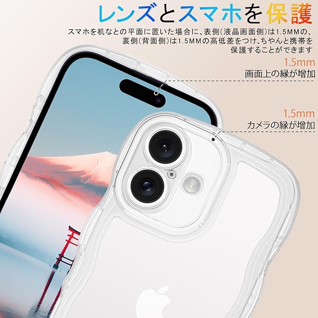 【かわいい波枠】これはiPhone 17 ケース用のクリアユニークな境界デザインで。かわいい波状のボーダーが指にフィットし、摩擦が高まります。透明度が高く、黄変防止を実現しました、スマホ本体の美しさを完璧に見せる、携帯電話をよりファッショナブルで目を引くようにします。ファッションと実用性の完璧な組み合わせ。柔らかTPU素材なので着脱簡単です。 「ご注意:背面には写真などを入ることができる、厚みのあるアクリルスタンドは入りません。」