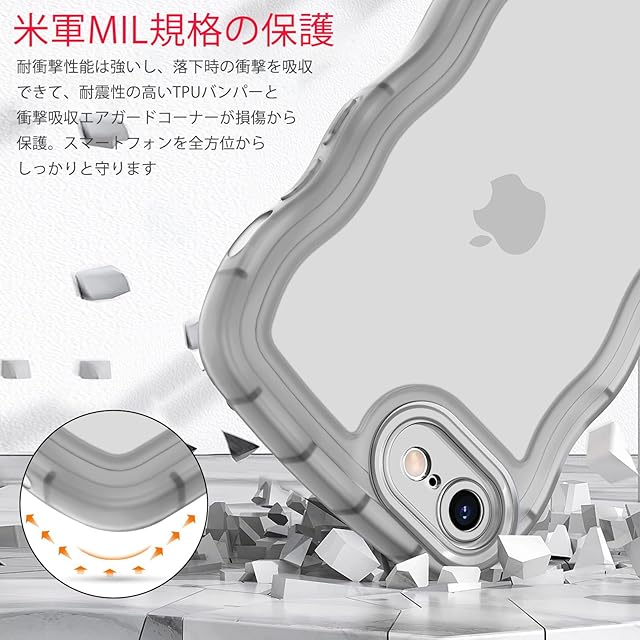 【かわいい波枠】これはiPhone 7/8/SE2/SE3 ケース用のクリアユニークな境界デザインで。かわいい波状のボーダーが指にフィットし、摩擦が高まります。透明度が高く、黄変防止を実現しました、スマホ本体の美しさを完璧に見せる、携帯電話をよりファッショナブルで目を引くようにします。ファッションと実用性の完璧な組み合わせ。柔らかTPU素材なので着脱簡単です。
