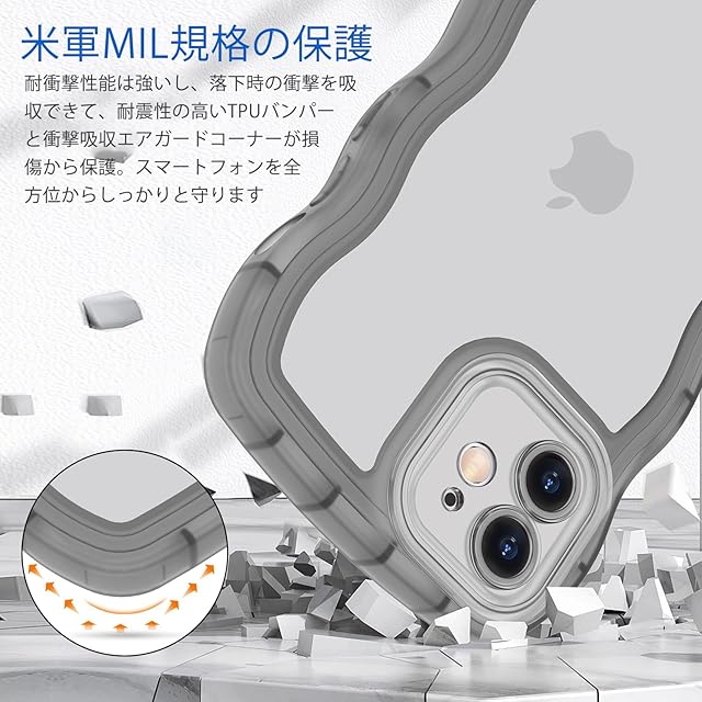 【かわいい波枠】これはiPhone 12mini ケース用のクリアユニークな境界デザインで。かわいい波状のボーダーが指にフィットし、摩擦が高まります。透明度が高く、黄変防止を実現しました、スマホ本体の美しさを完璧に見せる、携帯電話をよりファッショナブルで目を引くようにします。ファッションと実用性の完璧な組み合わせ。柔らかTPU素材なので着脱簡単です。