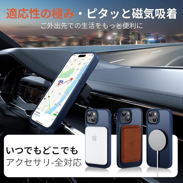 【MagSafe対応・強力な吸着充電】内蔵された強力なマグネットでピッタリと密着し、MagSafeに対応した全ての機能と完全に互換性があります。iPhone 15の充電効率が大幅に向上しました。 アイフォン15 ケース を外すことなく、MagSafe充電器、MagSafeバッテリー、MagSafe車載ホルダー、MagSafeリングなど、全てのMagSafeアクセサリーを使用できます。スマホを充電する時は、アイフォン 15ケースを装着したままMagSafe充電器に取り付けるか、Qi規格の充電器の上に置くだけです。充電できていなかったということを避けられるのが魅力です。より簡単で、より高速で、日常生活に便利な iPhone 15 ケース です。