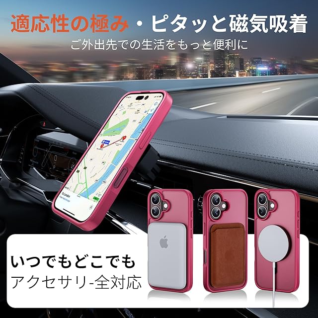【MagSafe対応・強力な吸着充電】内蔵された強力なマグネットでピッタリと密着し、MagSafeに対応した全ての機能と完全に互換性があります。iPhone 16の充電効率が大幅に向上しました。 アイフォン16 ケース を外すことなく、MagSafe充電器、MagSafeバッテリー、MagSafe車載ホルダー、MagSafeリングなど、全てのMagSafeアクセサリーを使用できます。スマホを充電する時は、アイフォン 16ケースを装着したままMagSafe充電器に取り付けるか、Qi規格の充電器の上に置くだけです。充電できていなかったということを避けられるのが魅力です。より簡単で、より高速で、日常生活に便利な iPhone 16 ケース です。