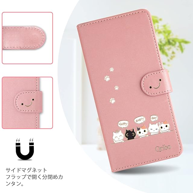 Qribo Google Pixel 6a ケース 手帳型 ピクセル6a ケース 手帳型 Pixel6a ケース シンプルなのに可愛いデザイン エンボス加工猫柄 うれしい気持ち 6.1インチ対応 グーグルピクセル6aケース ピクセル6aカバー Google 6a スマホケース 薄型 防水 の耐久性 滑り防止 美しい 贈り物 友達 - ピンク