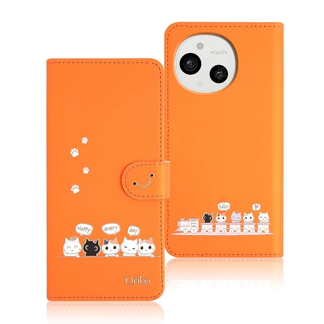 商品名:Qribo Aquos sense9 ケース 手帳型 アクオス センス 9 カバー SH-M29 ケース シンプルなのに可愛いデザイン エンボス加工猫柄 うれしい気持ち 6.1インチ対応 アクオスセンス9 ケース Aquos SH53E スマホケース シャープ センス 9 手帳型 ケース SH-53E SHG14 ケース 薄型 防水 の耐久性 滑り防止 美しい 贈り物 友達 - オレンジ