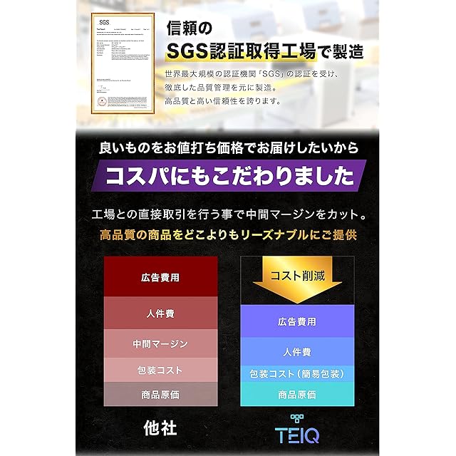 ✅【 トップクラスの 硬度 と 柔軟性 】 ガラスフィルム は硬ければ硬いほど 『丈夫』 というわけではありません。 『丈夫なフィルム』を実現するには『硬さとある程度の柔軟性』が必要です。 TEIQ は製造工場と協力し、従来の製造方法と素材を見直し、【 バランスの良い 硬さ と 柔らかさ 】を併せ持つガラスフィルムを実現しました。 カッターやドリルでも傷つくことなく、曲げにも強く、2.5Dラウンドエッジにより角の耐久性も高い、 iPhone13ProMax 対応の ガラスフィルム です。
