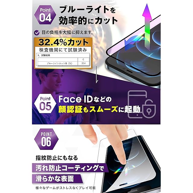 ✅【 透明 ブルーライトカット で 黄ばまない・ギラつかない 】新しい技術により、フィルムがほぼ無色透明の状態で ブルーライト のカットを実現。これまでのブルーライトカットフィルムのような黄ばみやギラつきを抑えました。
