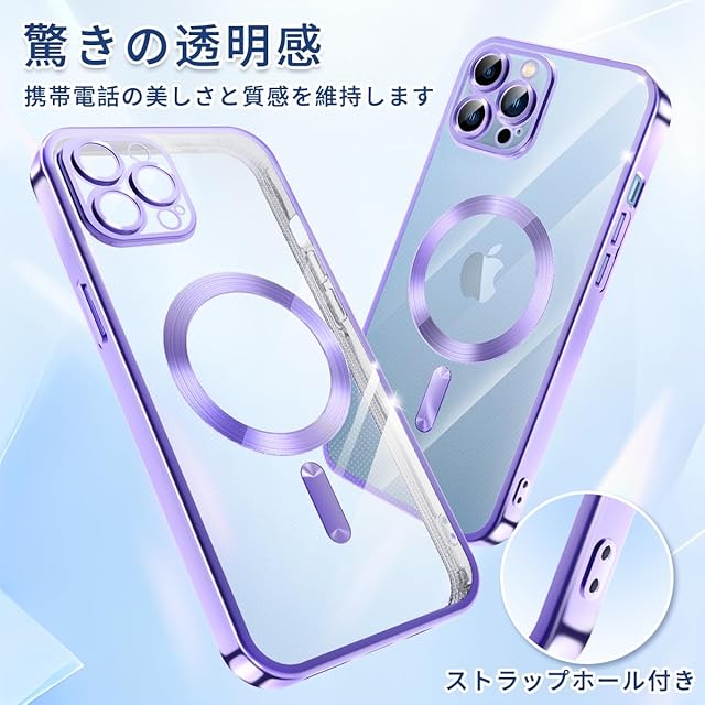 商品名:iPhone 12 Pro ケース MagSafe対応 クリア メッキ加工 アイフォン12Pro スマホケース 耐衝撃 TPU ワイヤレス充電対応 いpほね 12 pro カバー ストラップホール付き 薄型 透明 超軽量 黄ばみにくい 柔軟 滑り止め (パープル)