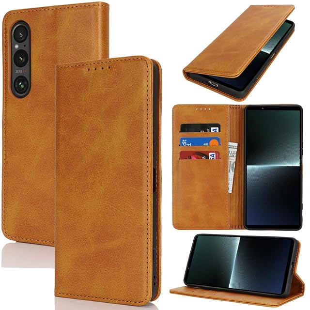 対応 Xperia 1 vi ケース 手帳型 スマホケース ソニー エクスペリア1 VI カバー 手帳型 カードスロット、キックスタンド レザー(ライトブラウン)