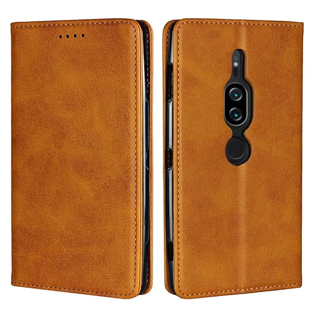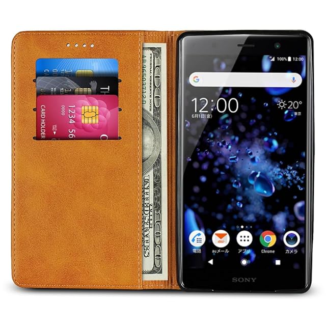対応 Xperia xz2 premium ケース 手帳型 スマホケース エクスペリアxz2premium so-04k sov38 カバー 手帳型 カードスロット、キックスタンド レザー(ライトブラウン)
