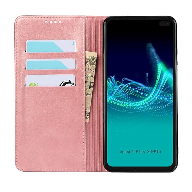 対応 Aquos sense4 plus ケース 手帳型 スマホケース アクオスセンス4プラス シャープ sense4plus SH-M16 カバー 手帳型 カードスロット、キックスタンド レザー(ローズゴールド)