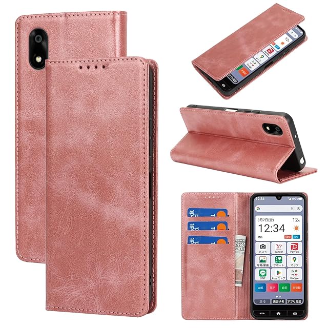 対応 A402ZT ケース 手帳型 スマホケース 簡単スマホ4 手帳ケース かんたんスマホ4 A402ZT カバー 手帳型 カードスロット、キックスタンド レザー(ローズゴールド)
