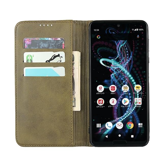 商品名:対応 Aquos r5g ケース 手帳型 スマホケース アクオスr5g shg01 sh-51a 908sh カバー 手帳型 カードスロット、キックスタンド レザー(ダークグリーン)