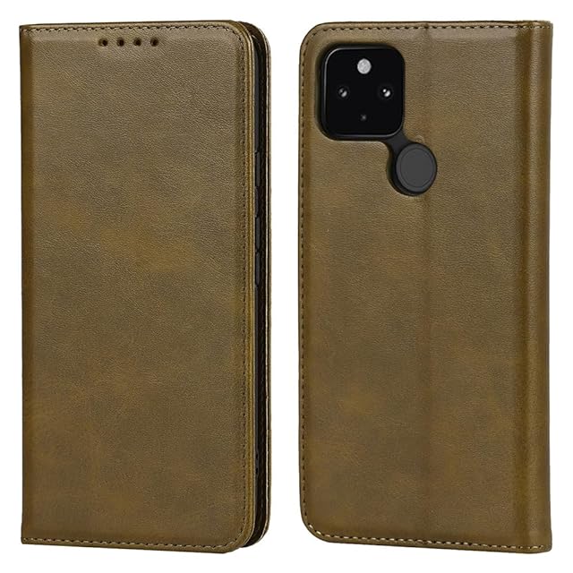 対応 Google pixel5 ケース 手帳型 スマホケース グーグル ピクセル5 カバー 手帳型 カードスロット、キックスタンド レザー(ダークグリーン)