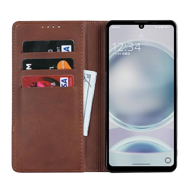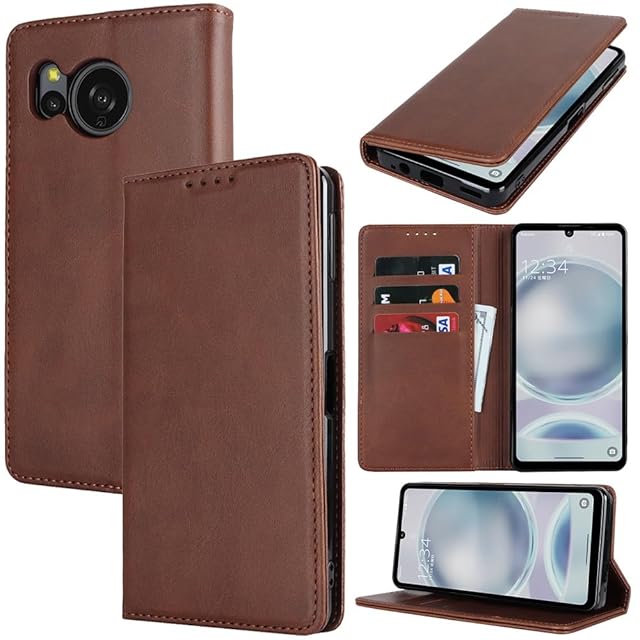 対応 Aquos sense8 ケース 手帳型 スマホケース アクオスセンス8 sh-54d shg11 カバー 手帳型 カードスロット、キックスタンド レザー(ダークブラウン)