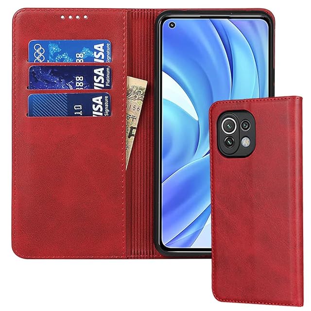 対応 Xiaomi 11 lite 5g ケース 手帳型 スマホケース xiaomi mi 11 lite 5g シャオミ ミー 11 lite 5g カバー 手帳型 カードスロット、キックスタンド レザー(レッド)