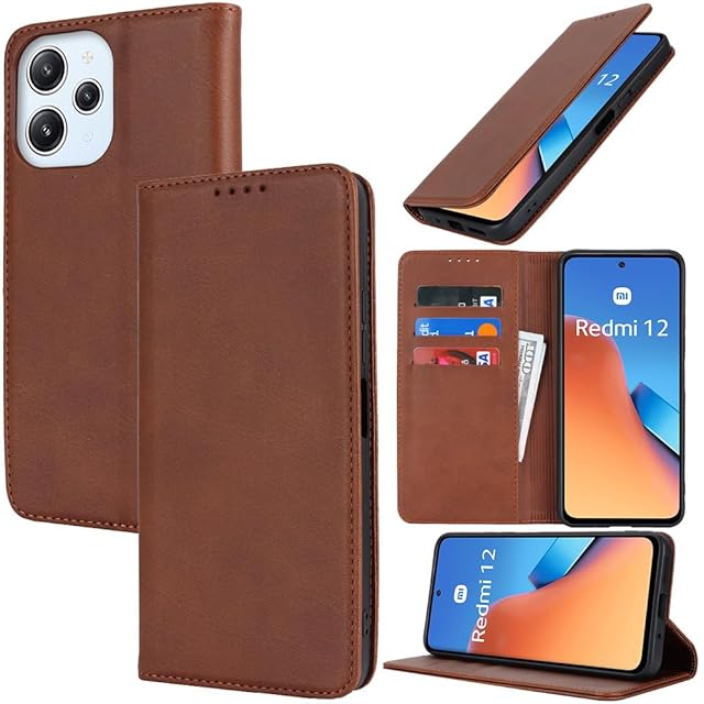 対応 Xiaomi Redmi 12 5g ケース 手帳型 スマホケース シャオミ レッドミー12 5g XIG03 A401XM カバー 手帳型 カードスロット、キックスタンド レザー(ダークブラウン)