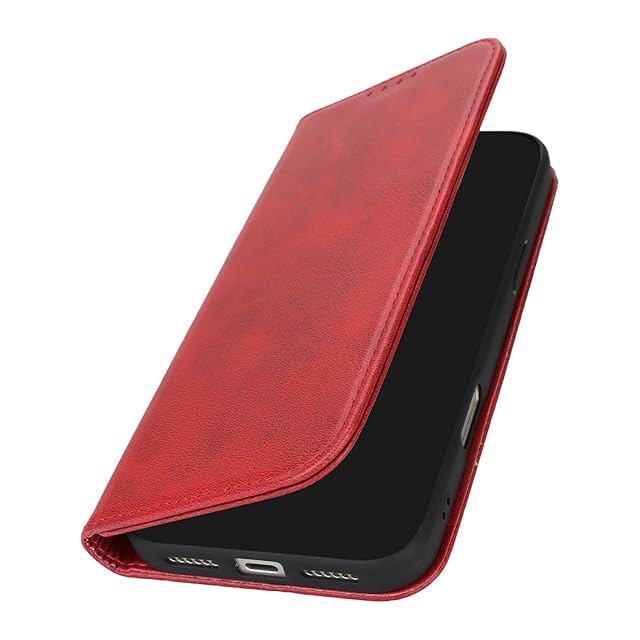 対応 iphone17 pro max ケース 手帳型 アイフォン17 プロマックス スマホケース いphone17 PRO MAX カバー 手帳型 カードスロット、キックスタンド レザー(レッド)
