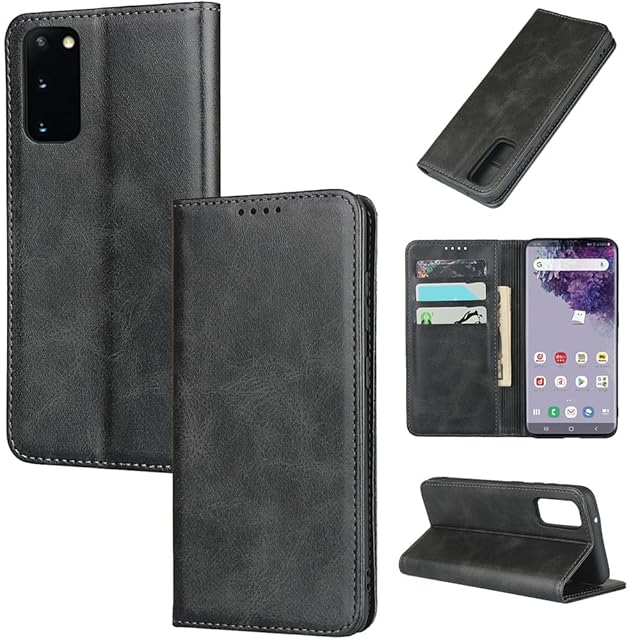 対応 Galaxy s20 ケース 手帳型 スマホケース サムスン ギャラクシーs20 sc-51a scg13 カバー 手帳型 カードスロット、キックスタンド レザー(ブラック)