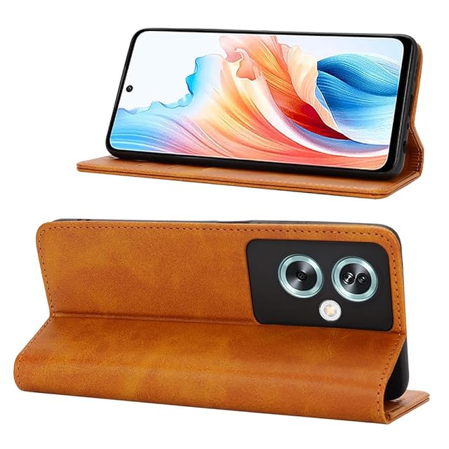 対応 Oppo a79 5g ケース 手帳型 スマホケース オッポa79 5g カバー 手帳型 カードスロット、キックスタンド レザー(ライトブラウン)
