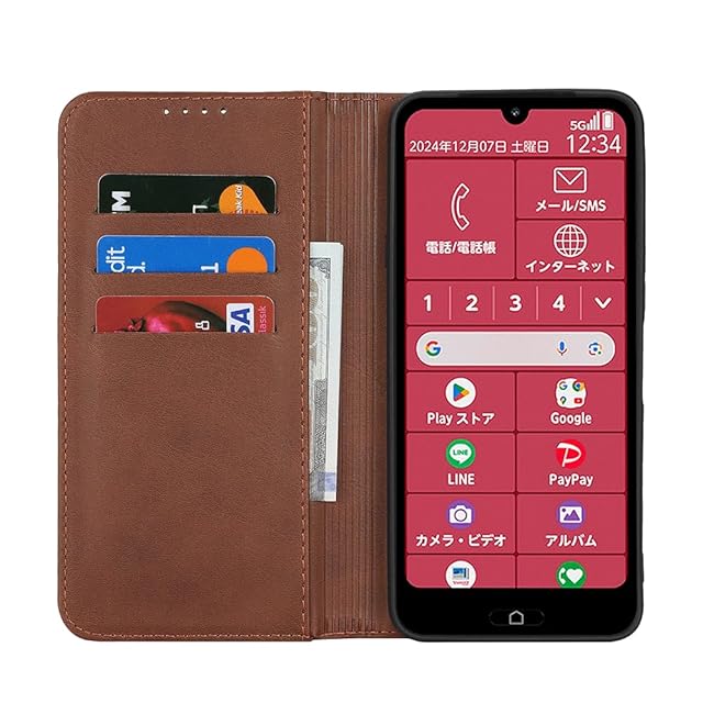 商品名:対応 A401FC ケース 手帳型 スマホケース らくらくスマートフォン a A401FC 手帳型ケース らくらくスマートフォン Lite MR01 カバー 手帳型 カードスロット、キックスタンド レザー(ダークブラウン)