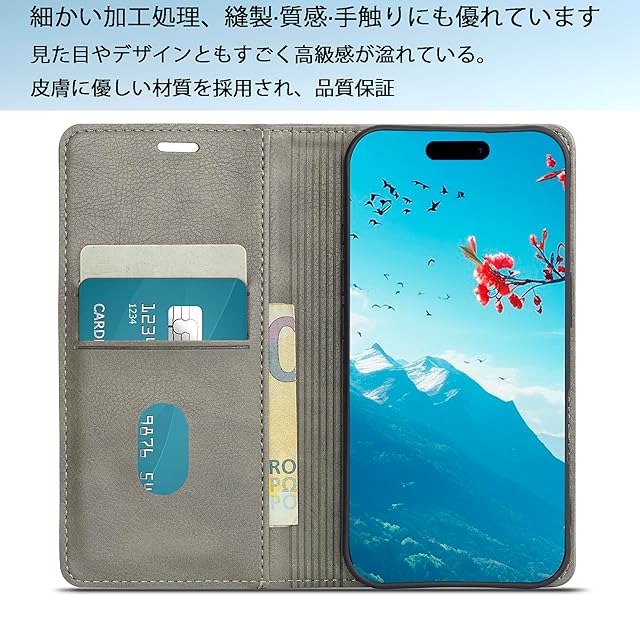 ・高品質のPUレザーを使用しており、柔らかく手触りが良いだけでなく、長時間の使用でも色落ちや劣化を防ぎ、天然皮革のような高級感と柔らかさを持ちながら、耐久性にも優れています。環境にも優しく、さらに耐水性や耐汚れ性も備えています。インナーケースは柔らかいソフトTPU素材を採用して、スマートフォンに完全にフィットするように設計されています。