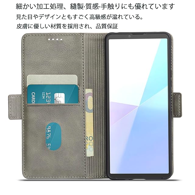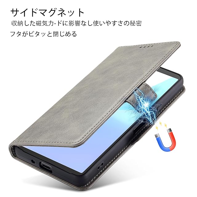 商品名:Xperia 10 III ケース手帳型 SO-52B SOG04 ケース Xperia 10 III Lite XQ-BT44 手帳型 ソニー so52b 手帳ケース スマホケース case 真珠光沢レザー スキミング防止 サイドマグネット スタンド機能(Sony Xperia 10 III SO-52B / SOG04 / XQ-BT44対応)グレー