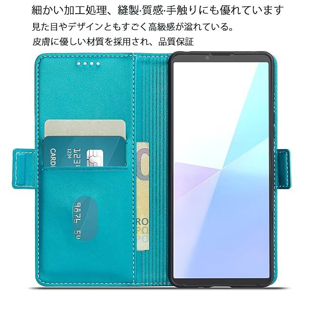 Xperia 10 III ケース手帳型 SO-52B SOG04 ケース Xperia 10 III Lite XQ-BT44 手帳型 ソニー so52b 手帳ケース スマホケース case 真珠光沢レザー スキミング防止 サイドマグネット スタンド機能(Sony Xperia 10 III SO-52B / SOG04 / XQ-BT44対応)ターコイズ
