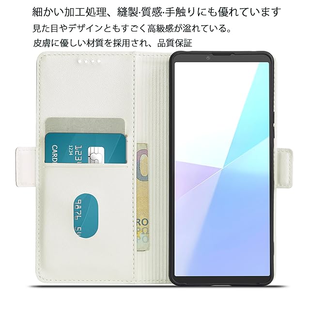商品名:Xperia 10 III ケース手帳型 SO-52B SOG04 ケース Xperia 10 III Lite XQ-BT44 手帳型 ソニー so52b 手帳ケース スマホケース case 真珠光沢レザー スキミング防止 サイドマグネット スタンド機能(Sony Xperia 10 III SO-52B / SOG04 / XQ-BT44対応)ホワイト