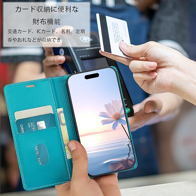 商品名:iPhone 14ケース手帳型 iPhone14手帳型ケース アイフォン14手帳ケース アップル iPhone 14 ケース 真珠光沢レザー RFID磁気防止 スマホケース 内蔵マグネット スタンド機能 カード入れ 耐摩擦 薄型 ターコイズ