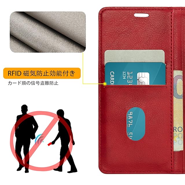 Arrows We F-51B ケース 手帳型 f51bケース FCG01手帳型ケース Arrows We ケース fcg01 スマホケース f-51b手帳型 富士通 携帯ケースcase 真珠光沢レザー RFID磁気防止 スマホケース 内蔵マグネット スタンド機能 カード入れ 耐摩擦 薄型(Arrows We F-51B/FCG01対応)レッド
