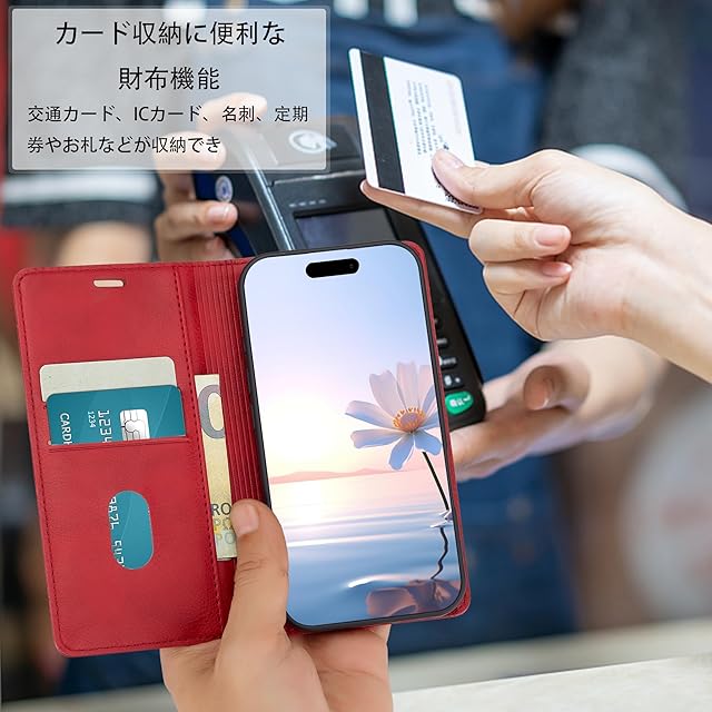 ・高品質のPUレザーを使用しており、柔らかく手触りが良いだけでなく、長時間の使用でも色落ちや劣化を防ぎ、天然皮革のような高級感と柔らかさを持ちながら、耐久性にも優れています。環境にも優しく、さらに耐水性や耐汚れ性も備えています。インナーケースは柔らかいソフトTPU素材を採用して、スマートフォンに完全にフィットするように設計されています。